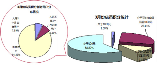 從圖可發(fā)現(xiàn),實體網(wǎng)點(diǎn)1千多家,3月份獲得酬金的只有465家,未獲積分酬金的網(wǎng)點(diǎn)數(shù)量不少。在有積分酬金的網(wǎng)點(diǎn)中,約70%的網(wǎng)點(diǎn)增值業(yè)務(wù)傭金低于平均水平163元。而酬金獲取多的主要集中在少數(shù)幾個網(wǎng)點(diǎn)。表明:增值業(yè)務(wù)開展量主要集中在少數(shù)網(wǎng)點(diǎn),遠(yuǎn)未形成渠道的整體能力。